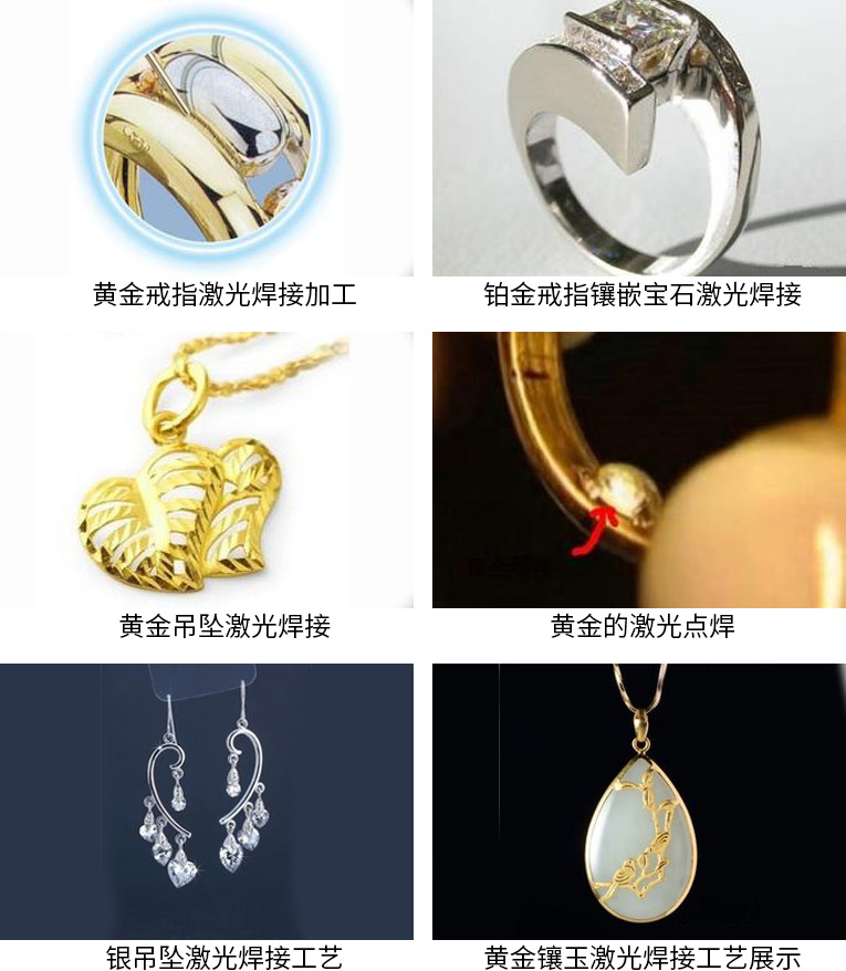 8、可激光焊接各種金屬材質(zhì):金,銀,鉑金,銅,鈦,不銹鋼等各種金屬材料。包括:戒指,耳環(huán),手鏈,項鏈,領(lǐng)帶夾,袖口等珠寶首飾,金屬飾品的激光焊接。