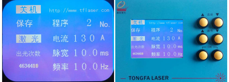 2、本首飾激光點焊機(jī)軟件可選擇中文或者英文界面,對不同加工位置選擇相應(yīng)的激光焊接加工參數(shù)。由選擇按鈕移動光標(biāo)到相應(yīng)的參數(shù)位置,由調(diào)節(jié)按鈕調(diào)節(jié)參數(shù)的大小;